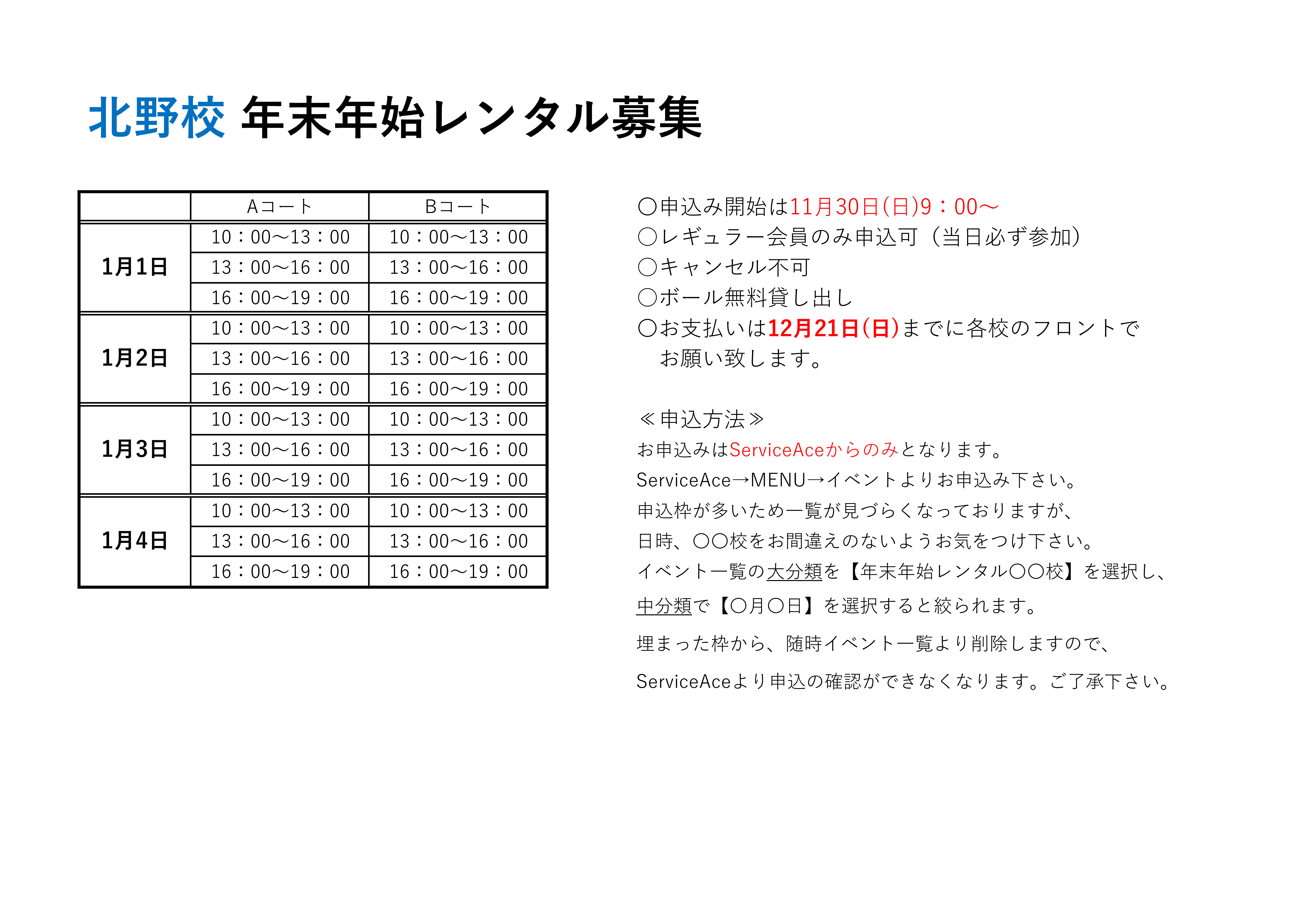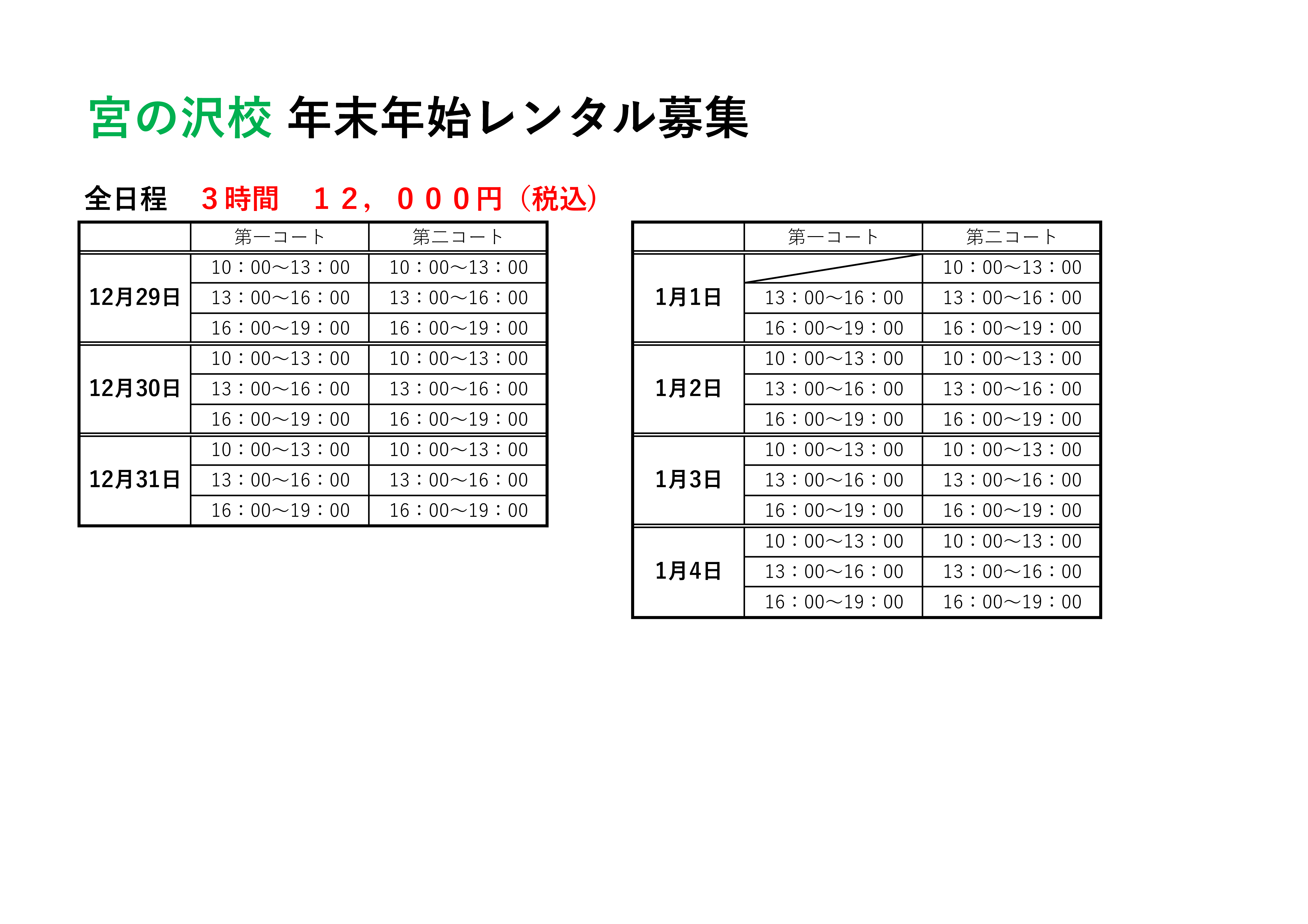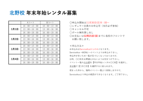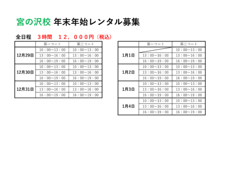 年末年始(12/29~1/4)のレンタル募集についてお知らせします!